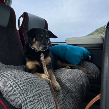 Auch für ihren reiselustigen Hund Bari legt Anna Plasa die erste eigene Busreise mit Hunden auf